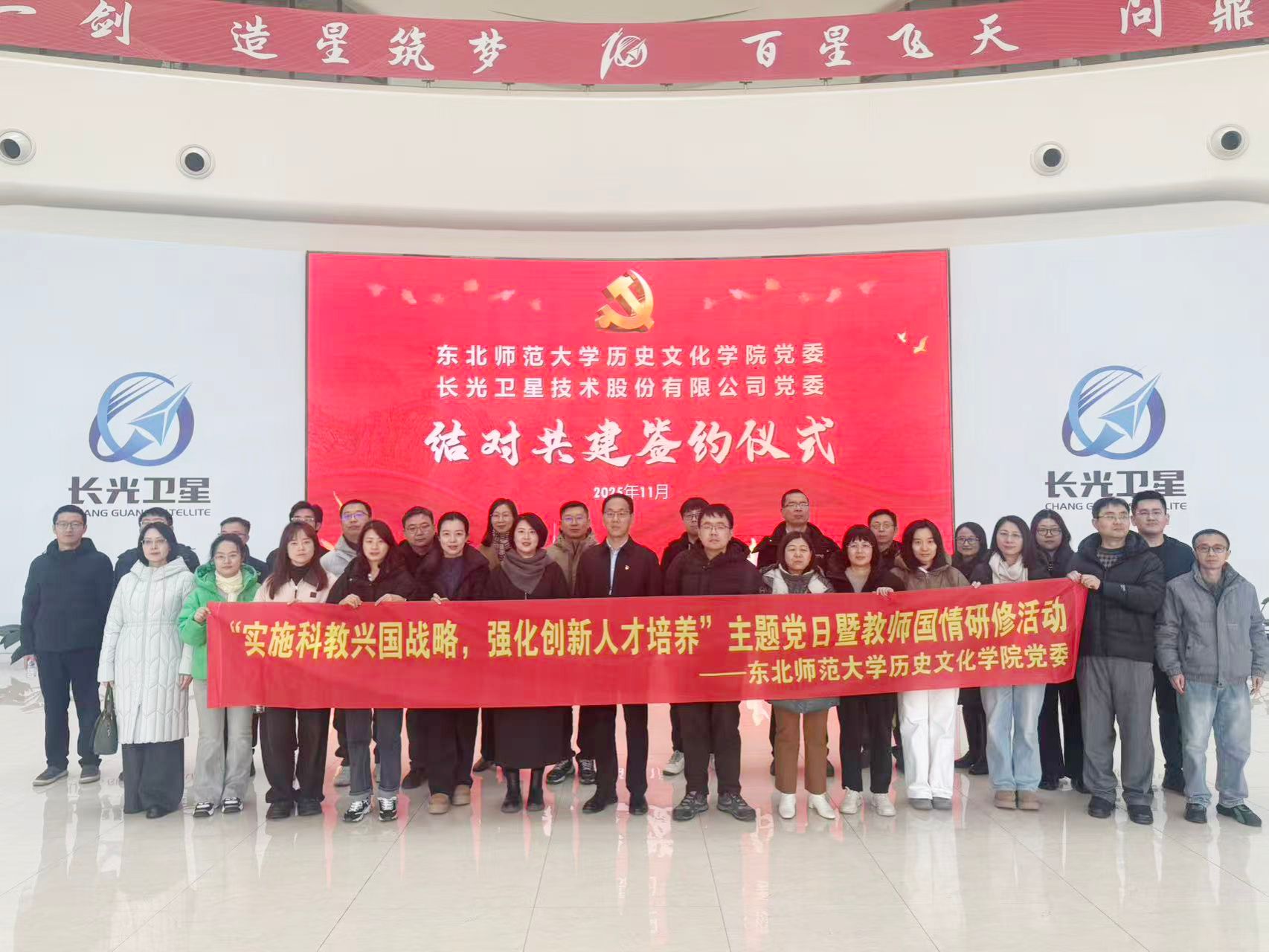 为深入学习贯彻习近平新时代中国特色社会主义思想,全面落实党的二十届四中全会精神,切实发挥新时代全省党建工作标杆院系服务吉林、建设吉林的模范带头作用,进一步探索完善“大学—企业”党建联建共建新机制,推动高校一流学科建设与国家高精尖技术发展深度融合,11月26日,历史文化学院党委组织教职工党员前往长光卫星技术股份有限公司开展“实施科教兴国战略,强化创新人才培养”主题党日暨教师国情研修活动,并举行“五育并举教育实践共建基地”合作签约仪式。